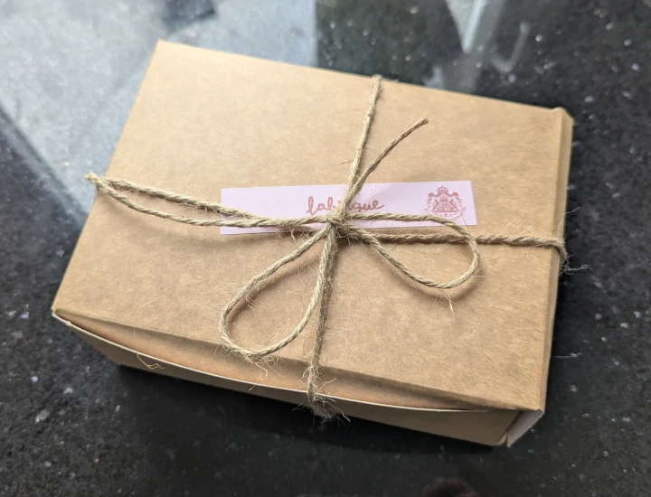 At that width and 180g. It's large, despite the medium-classed height. It was nicely packaged in a brown cardboard box and neatly tied with string.