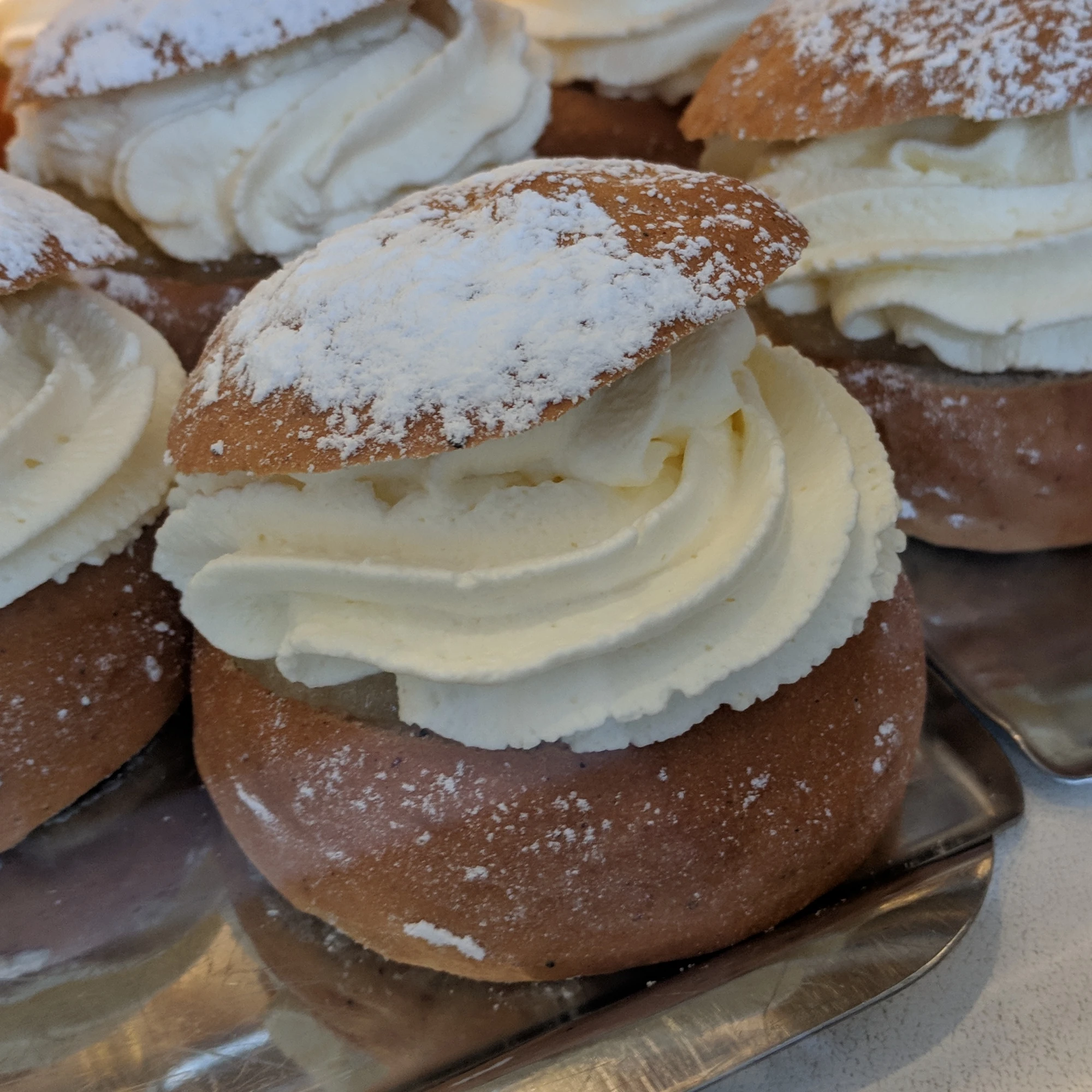 Bread a bit doughy, almond paste a bit too sweet, cream a bit tasteless and no hole in the middle for the paste, just piped straight on.